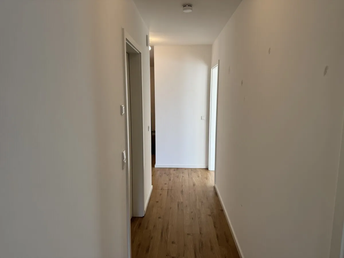 Zwei Schlafräume und ein großzügiges Wohnzimmer mit offener Küche, dazu ein Abstellraum, ein modernes Bad sowie ein Gäste-WC könnten schon bald von Ihnen bezogen werden. Der Flur im Eingangsbereich erschließt sämtliche Wohnräume. Bodentiefe Fenster, natürlich mit energiesparender Dreifachverglasung, sorgen für Licht und verleihen den Räumen ein einladendes Wohnambiente.