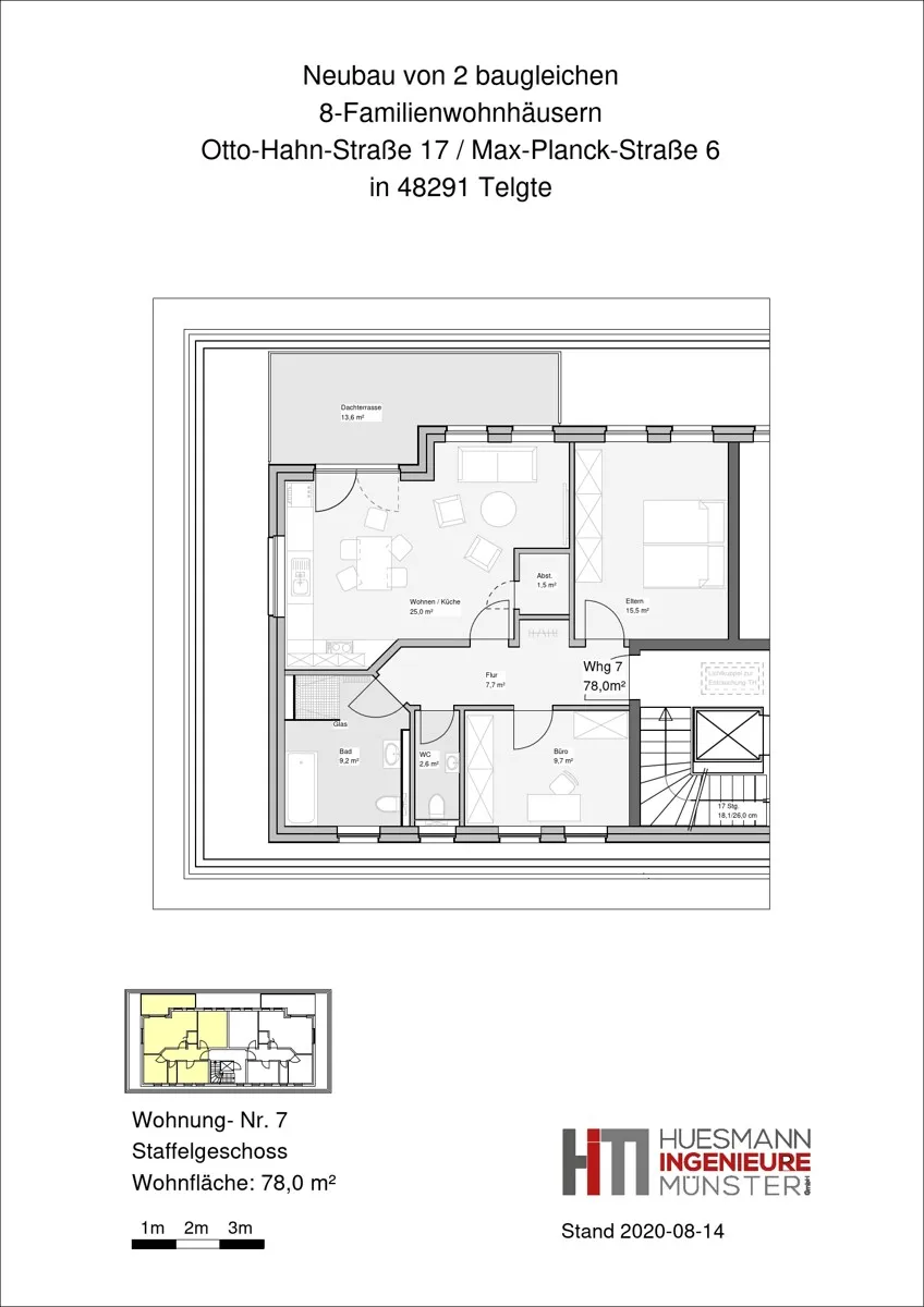 Diese 3-Zimmer-Wohnung befindet sich im Dachgeschoss eines 8-Parteien-Mehrfamilienhauses (Neubau) in einer gewachsenen Wohnsiedlung von Telgte. Sämtliche Einkaufsmöglichkeiten sind fußläufig zu erreichen. Telgte verfügt über eine gute Infrastruktur mit sämtlichen Schulformen und Kindergärten. Die gemütliche Altstadt lädt zum Shoppen und Bummeln ein. Aufgrund des grünen Umlandes und dem Naherholungsgebiet „Klatenberge“ kommen auch die Naturliebhaber in Telgte auf Ihre Kosten. Pendler, die Ihren Arbeitsplatz in der Westfalenmetropole Münster haben, freuen sich über die günstige Bahnverbindung, die für einen Transport bis in die Innenstadt innerhalb von 12 Minuten sorgt.