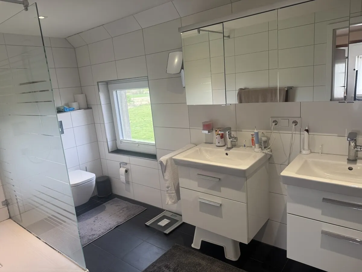 Zwei Bäder sowie ein zusätzliches Gäste-WC sorgen für Komfort im Alltag. Ergänzt wird das Raumangebot durch praktische Abstellräume und einen Bodenraum, die ausreichend Stauraum schaffen.