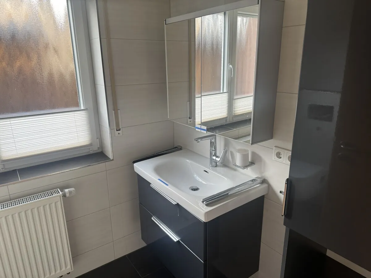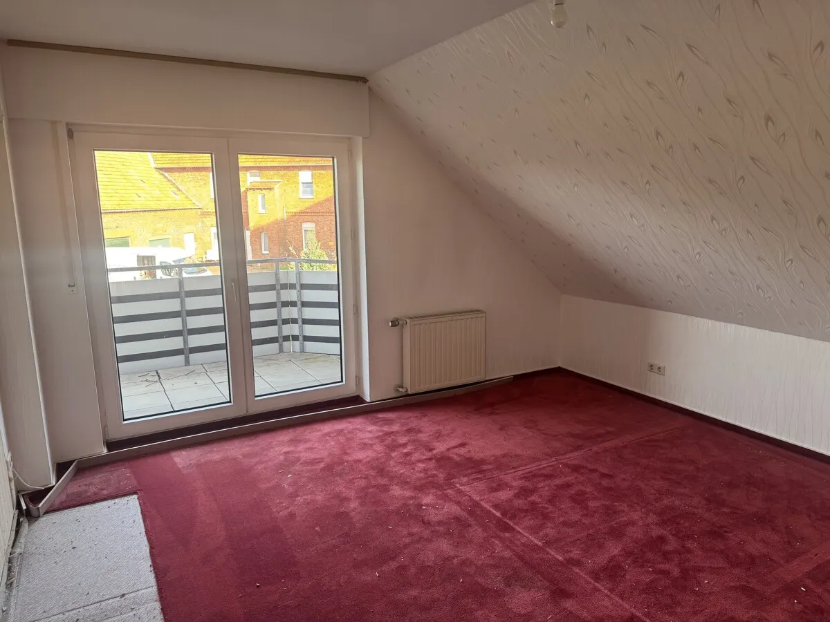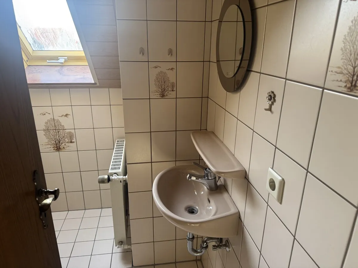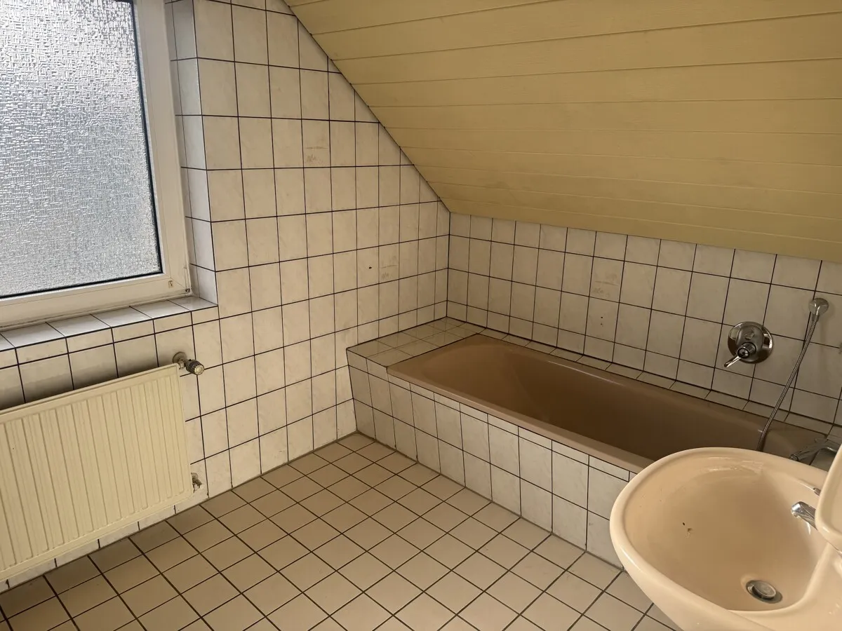 Auch ein Balkon erweitert den Wohnraum ins Grüne und schafft zusätzliche Rückzugsmöglichkeiten. Die Küche bietet ausreichend Platz für gemeinsame Kochmomente, während ein Gäste-WC den Komfort im Alltag ergänzt. Das Badezimmer ist funktional gestaltet und bietet Raum für eine moderne Neugestaltung. Ein weiteres Bad ist ideal für die Kinder geeignet.