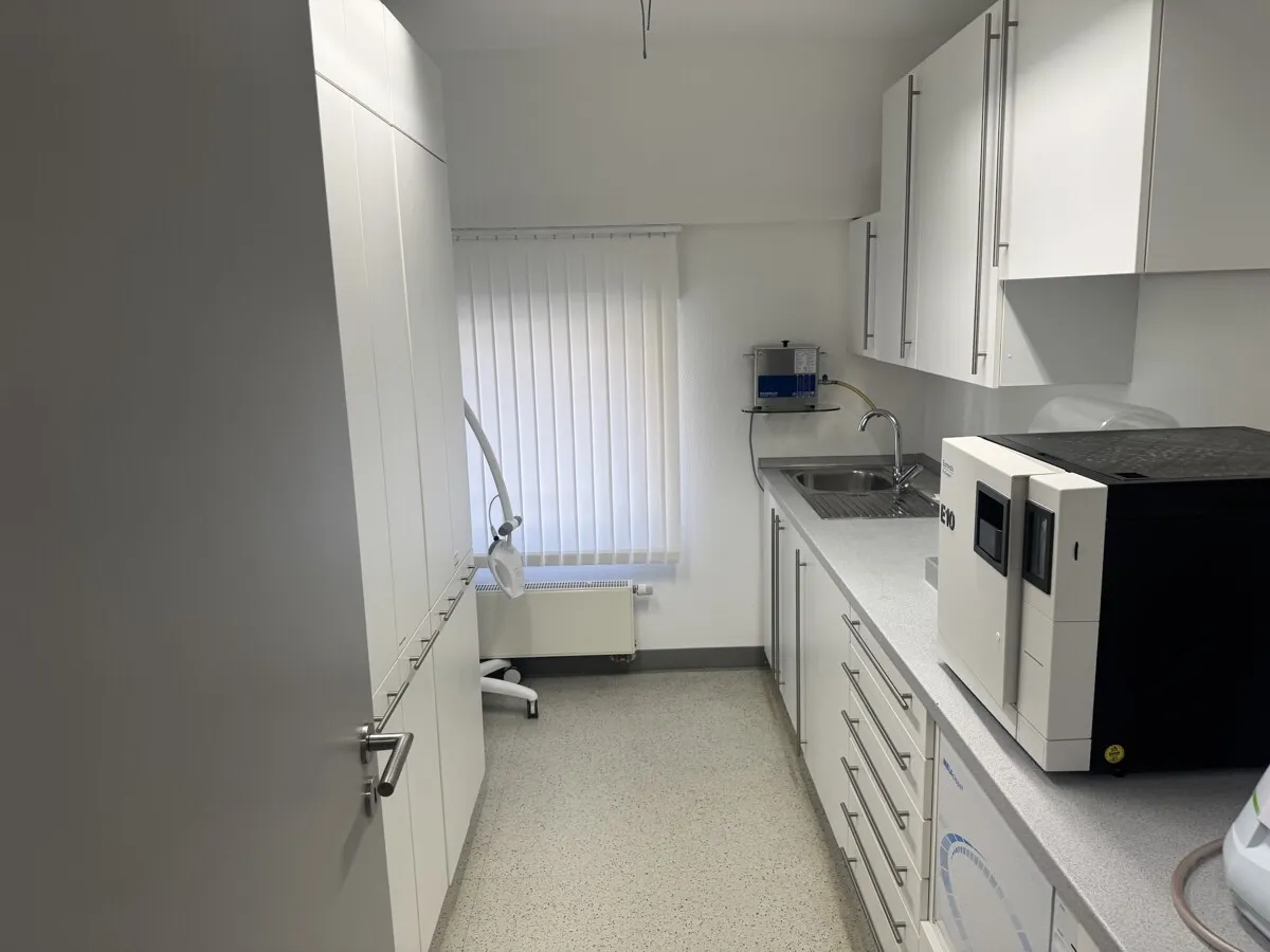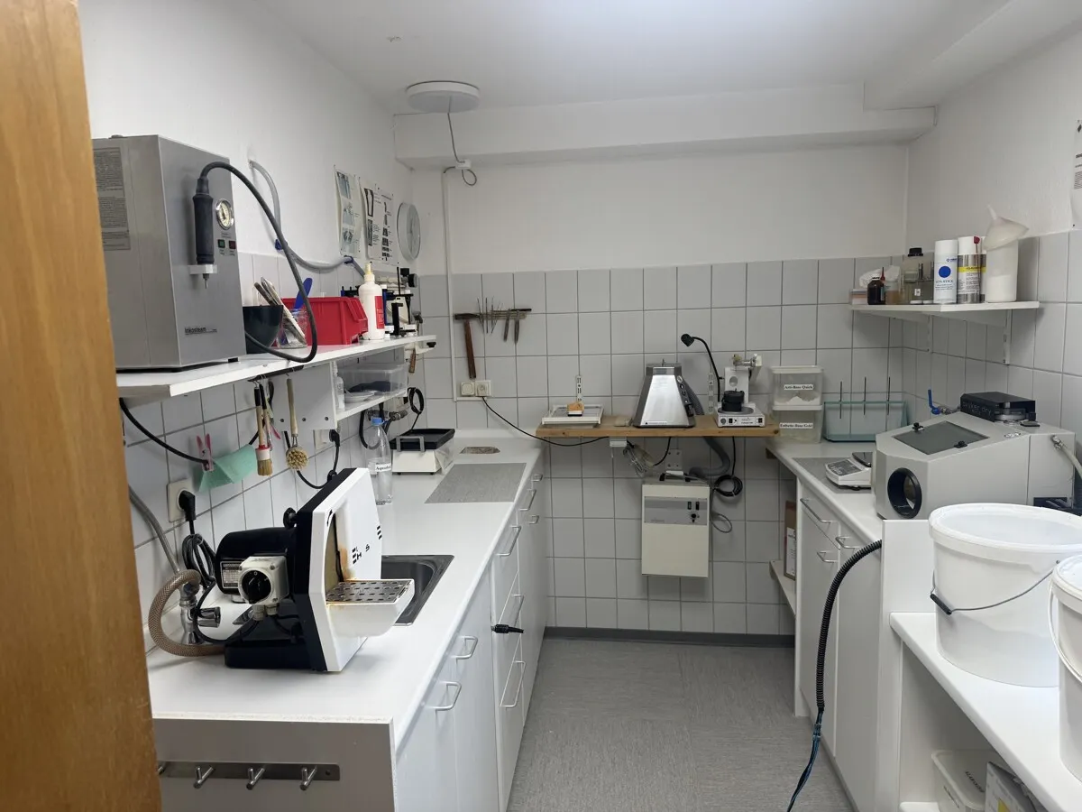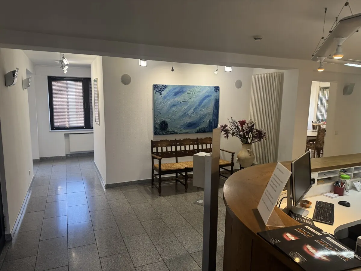 Derzeit wird das Objekt im Erd- und Obergeschoss als Zahnarztpraxis mit angeschlossenem Dentallabor genutzt. Die Räumlichkeiten sind auf die Anforderungen eines modernen Praxis- oder Laborbetriebs zugeschnitten, bieten jedoch durch ihre Raumstruktur eine enorme Flexibilität. Das Herzstück der privaten Nutzung bildet eine großzügige Maisonettewohnung. Diese wird derzeit noch von den Eigentümern bewohnt und bleibt bis zum endgültigen Verkauf deren Lebensmittelpunkt.