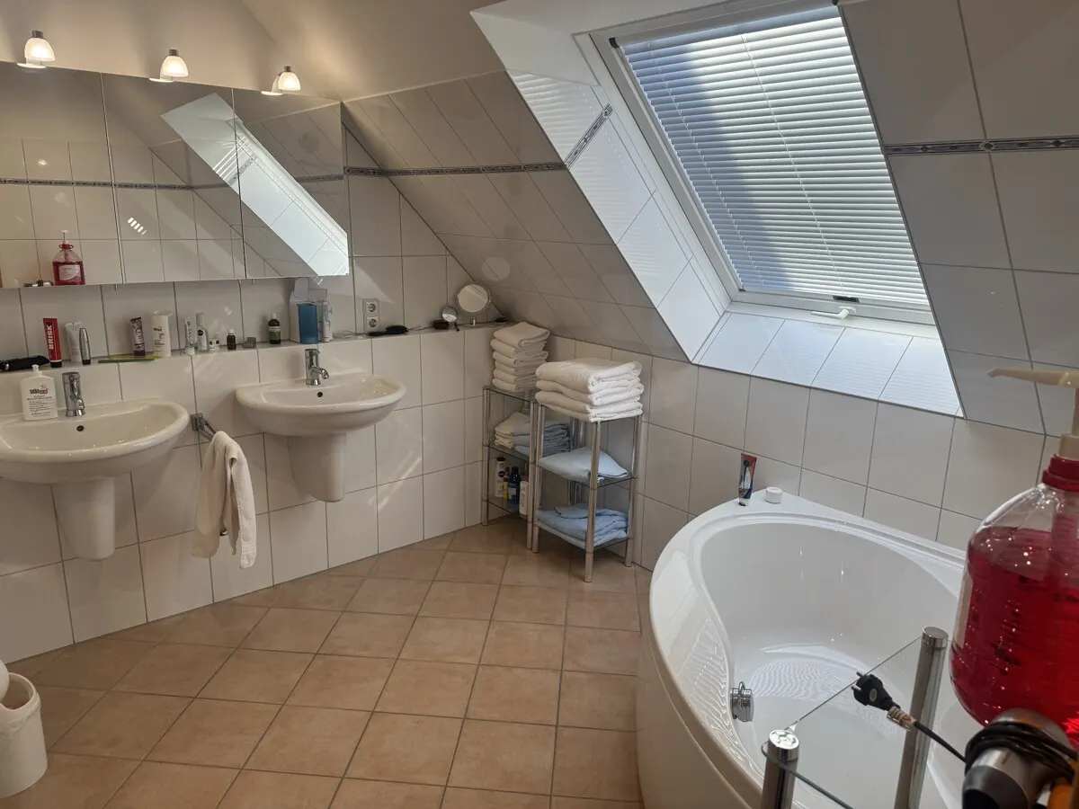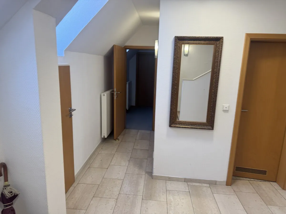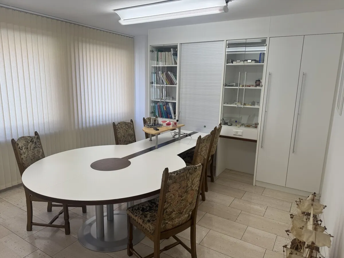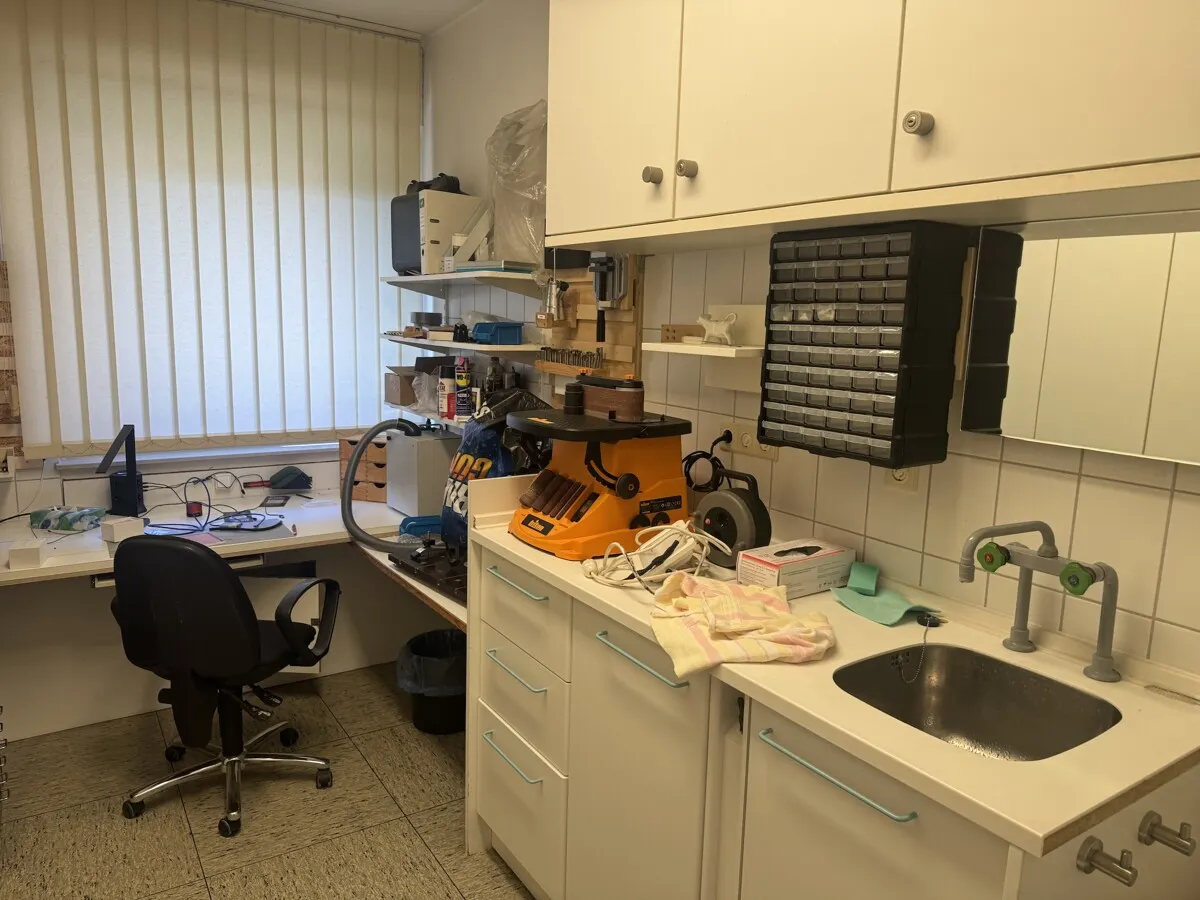 Derzeit wird das Objekt im Erd- und Obergeschoss als Zahnarztpraxis mit angeschlossenem Dentallabor genutzt. Die Räumlichkeiten sind auf die Anforderungen eines modernen Praxis- oder Laborbetriebs zugeschnitten, bieten jedoch durch ihre Raumstruktur eine enorme Flexibilität. Das Herzstück der privaten Nutzung bildet eine großzügige Maisonettewohnung. Diese wird derzeit noch von den Eigentümern bewohnt und bleibt bis zum endgültigen Verkauf deren Lebensmittelpunkt.